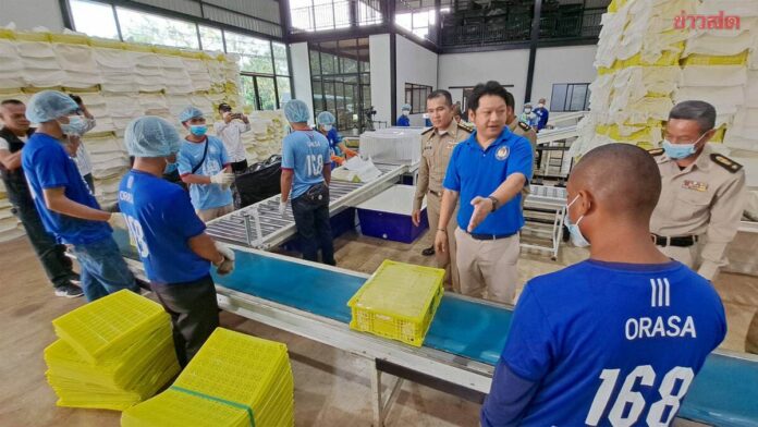នាយកគ្រប់គ្រងក្រុមហ៊ុន Orasa Fruit Co., Ltd. លោក Monthon Pariwat បាននាំមន្ត្រីពន្ធនាគារដើរពិនិត្យមើលការរៀបចំផ្លែមង្ឃុតសម្រាប់នាំចេញ ។ លោកលើកឡើងថា បច្ចុប្បន្ន ផ្លែមង្ឃុតរបស់ប្រទេសថៃបានផ្តល់ទិន្នផលដើមរដូវ ហើយក្រុមហ៊ុនត្រូវការនាំចេញផ្លែមង្ឃុតជាច្រើនទៅកាន់ទីក្រុងក្វាងចូវ និងផ្សារ Giang Nan ដែលជាផ្សារធំបំផុតនៅប្រទេសចិន ។
