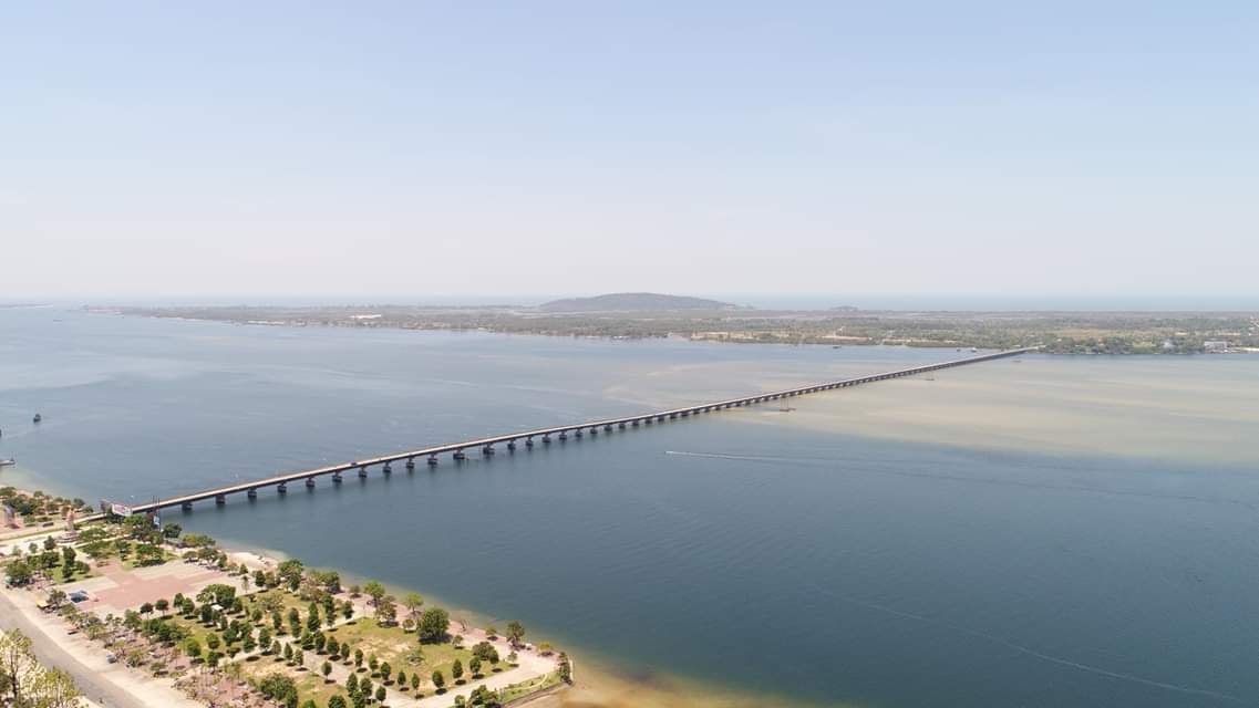 យើងត្រូវឆ្លងស្ពានកោះកុងដែលមានចម្ងាយ ៦៥០ ពីត្រើយខាងកើតទៅត្រើយខេត្តលិច ដើម្បីទៅដល់សំណង់ចេតិយដែលមានកម្ពស់ជាង ៤ម៉ែត្រនេះ។