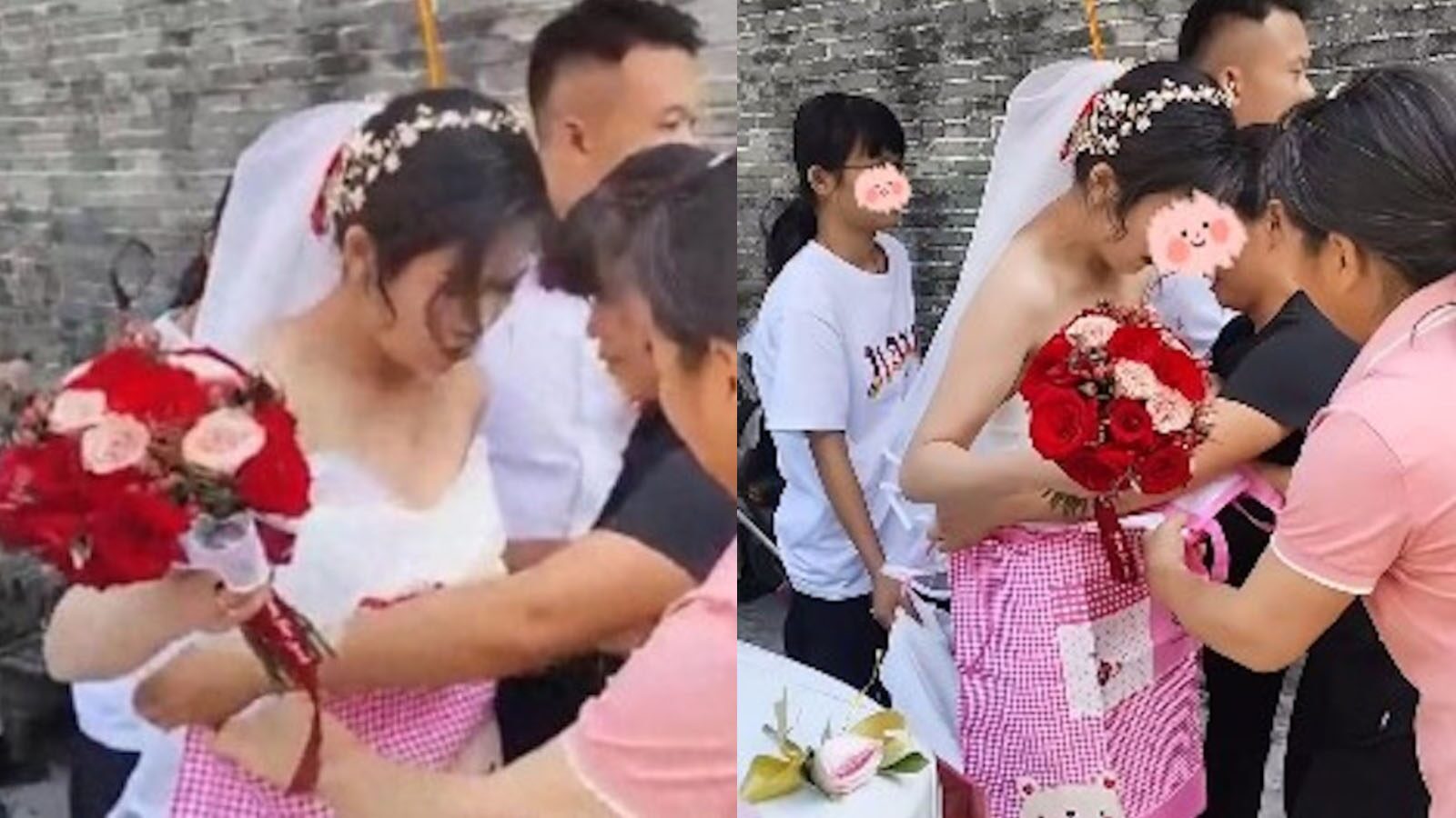 ប្រទេសចិន ៖ សារព័ត៌មានចិនរាយការណ៍ថា សាច់ញាតិកូនកំលោះបានចងអៀមចុងភៅឱ្យកូនក្រមុំក្នុងថ្ងៃរៀបអាពាហ៍ពិពាហ៍ និងធ្វើឱ្យភ្ញៀវចូលរួមកម្មវិធី ក៏ដូចជាអ្នកលេងបណ្តាញសង្គមនៅប្រទេសចិនរិះគន់យ៉ាងខ្លាំង ។ មនុស្សមួយចំនួនសួរថា តើនាងរៀបការដើម្បីក្លាយជាអ្នកបម្រើខាងប្រុស មែនទេ? ខណៈអ្នកខ្លះទៀតសួរថា តើនាងរង់ចាំធ្វើការងារក្នុងផ្ទះកូនកំលោះឬ? ប៉ុន្តែអ្នកស្រុកនៅក្បែរនោះប្រញាប់ឆ្លើយថា វាមិនមែនដូចការគិតនោះទេ ។男家在婚紗外綁圍裙網民怒斥:逼新娘進門做家務當地人咁解釋