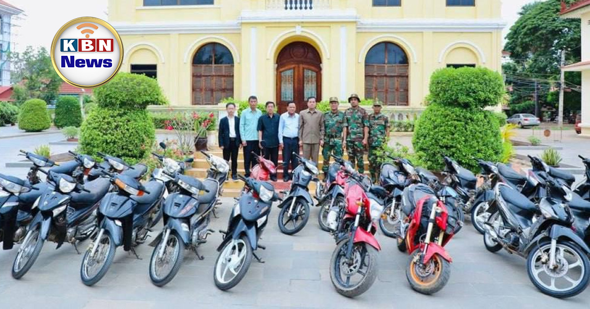 កំពង់ចាម៖ រដ្ឋបាលខេត្តកំពង់ចាម បានផ្ដល់ជូនម៉ូតូច្រើនប្រភេទរហូតដល់ចំនួន ១០០គ្រឿង ដែលសុទ្ធតែជាម៉ូតូរឹបអូសមកជាសម្បត្តិរដ្ឋ ជូនដល់កងកម្លាំងជួរមុខយកទៅបំពេញការងារ បម្រើក្នុងអង្គភាព ដែលឈរជើងការពារតាមបន្ទាត់ព្រំដែន ជាពិសេសសម្រាប់ដឹកជញ្ជូនឡើងចុះឲ្យកាន់តែមានភាពងាយស្រួល។