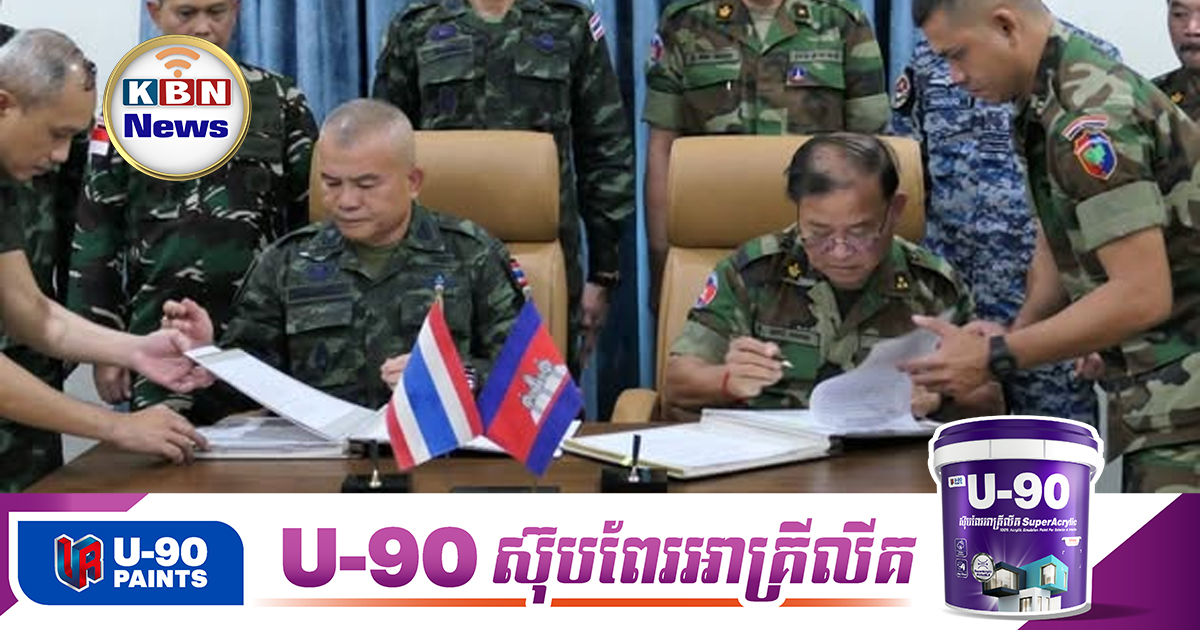 កាលពីថ្ងៃទី៣១ ខែតុលា ឆ្នាំ២០២៥ នៅច្រកព្រំដែនអន្តរជាតិអូរស្មាច់ ខេត្តឧត្តរមានជ័យ យោធភូមិភាគទី៤កម្ពុជា និងយោធភូមិភាគទី២ថៃ បានរៀបចំកិច្ចប្រជុំពិសេសក្រុមលេខាធិការដ្ឋាននៃគណៈកម្មាធិការព្រំដែនថ្នាក់យោធភូមិភាគ កម្ពុជា-ថៃ (RBC) សម្រាប់ត្រៀមរៀបចំកិច្ចប្រជុំពិសេស នៃគណៈកម្មាធិការព្រំដែនថ្នាក់យោធភូមិភាគ កម្ពុជា-ថៃ (RBC) ដោយមានការចូលរួមពីក្រុមអ្នកសង្កេតការណ៍អាស៊ាន (AOT) ប្រចាំនៅកម្ពុជា-ថៃ ដើម្បីតាមដាន ផ្ទៀងផ្ទាត់ និងធានាការអនុវត្តបទឈប់បាញ់ឱ្យបានពេញលេញ និងប្រសិទ្ធភាព ។ លទ្ធផលកិច្ចប្រជុំនេះ ភាគីទាំងពីរបានឯកភាពកែសម្រួលអាវុ.ធ និងយុទ្ធោបករណ៍ធុនធ្ងន់រវាងយោធភូមិភាគទី៤កម្ពុជា និងយោធភូមិភាគទី២ថៃ ជា៣ដំណាក់កាល ។.jpg)