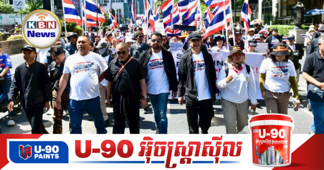 ក្រុមសកម្មជនជ្រុលនិយមថៃដែលមានឈ្មោះថា «រណសិរ្សរួបរួមដើម្បីអធិបតេយ្យភាព» បានប្រមូលផ្តុំគ្នាកាន់បដាធំៗដែលមានរូបមុខប្រធានាធិបតីអាមេរិក លោក ដូណាល់ ត្រាំ នាយករដ្ឋមន្ត្រីម៉ាឡេស៊ី និងជាប្រធានអាស៊ាន លោក អាន់វ៉ា អ៊ីប្រាហ៊ីម និងសម្តេច ហ៊ុន សែន ប្រធានព្រឹទ្ធសភាកម្ពុជា ដើរដង្ហែតាមដងផ្លូវនៃទីក្រុងបាងកក ដើម្បីទាមទារឲ្យប្រទេសម៉ាឡេស៊ី និងសហរដ្ឋអាមេរិក ឈប់ចេះដឹងកិច្ចការដោះស្រាយរវាងប្រទេសថៃ និងកម្ពុជា។