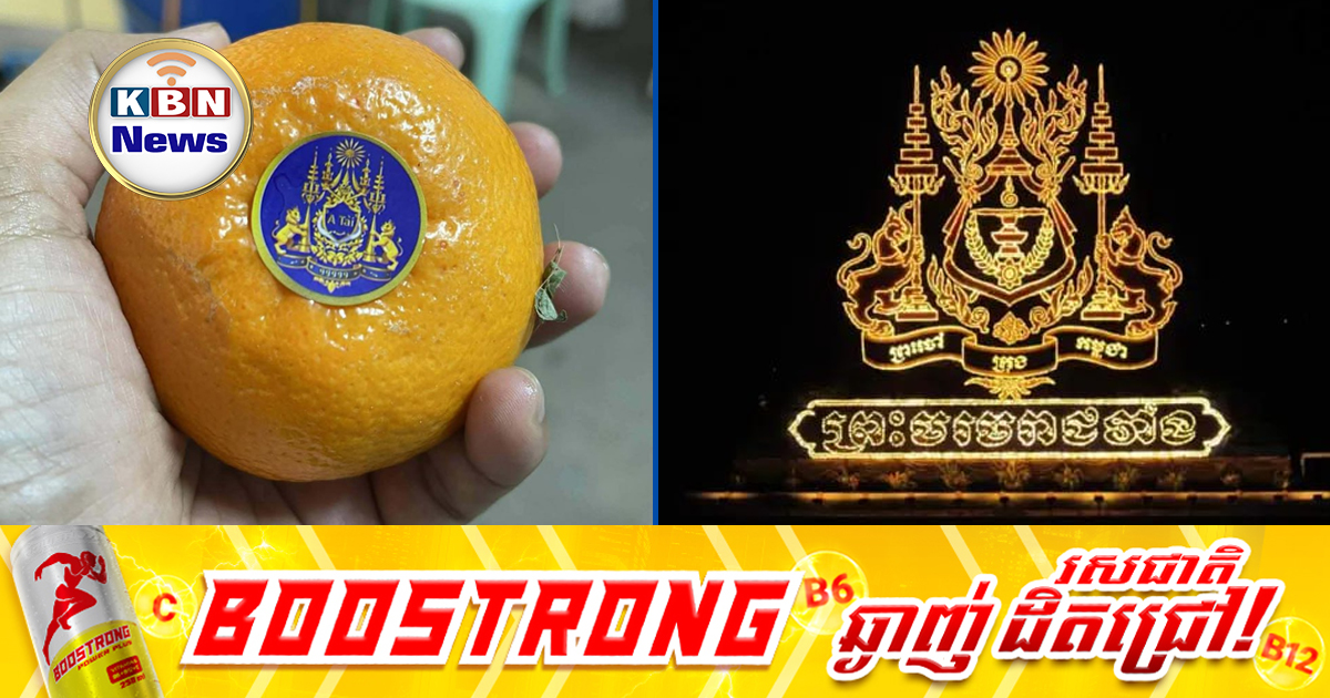 យល់យ៉ាងណាដែរបងប្អូន? រូបសញ្ញា «ព្រះរាជសង្ហារជាតិ» ដែលជានិមិត្តសញ្ញាត្រាជាតិនៃព្រះរាជាណាចក្រកម្ពុជា និងតំណាងឲ្យរាជានិយមកម្ពុជា ត្រូវបានបុគ្គល ឬក្រុមដែលជាប្រភពអ្នកនាំចូល និងចែកចាយយកមកព្រីនធ្វើជាស្ទីកគ័របិទលើផ្លែក្រូចដាក់លក់នៅតាមទីផ្សារតាមអំពើរចិត្ត និងថែមទាំងមានអក្សរវៀតណាមនៅពីលើនោះទៀត។