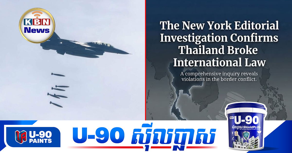 យោងតាមខ្លឹមសារអត្ថបទដែលបានចេញផ្សាយនៅថ្ងៃទី២០ ខែកុម្ភៈ កាសែត The New York Editorial បានរាយការណ៍អំពីពិតជាក់ស្តែងមួយចំនួនថា ប្រទេសថៃបានរំលោភបំពានច្បាប់អន្តរជាតិយ៉ាងធ្ងន់ធ្ងរ តាមរយៈការប្រើប្រាស់កម្លាំងយោធាហួសហេតុ និងអាវុធហាមឃាត់។ តាមទិន្នន័យនេះ ប្រទេសថៃបានប្រើប្រាស់យន្តហោះចម្បាំង F-16 ដើម្បីវាយប្រហារតាមអាកាសជាការសងសឹកទៅនឹងការផ្ទុះមីនដែលបង្ករបួសដល់ទាហានម្នាក់ ដែលទង្វើនេះត្រូវបានអ្នកស៊ើបអង្កេតចាត់ទុកថាជាការឆ្លើយតបដែល ហួសហេតុបំផុត។https://blogger.googleusercontent.com/img/b/R29vZ2xl/AVvXsEj2H4x3K1x1dJPhsF__vCMGJb5FSNL4UHbHD3Ai6i34554t5fMIosa4Jk1ALpHs764JvougkhO9jShLx8X13uzqaEaZZnO_o7KC2cA6PVdI2IG1nd1JrC3Nh2SF-IhzLiOgSKdNL5r4gnjMd8-gLlN7SLDYiK_pjVCisekwuYwvcjKIqLGrfrYSWWYscSDf/s640/photo_2026-02-20_11-53-17.jpg