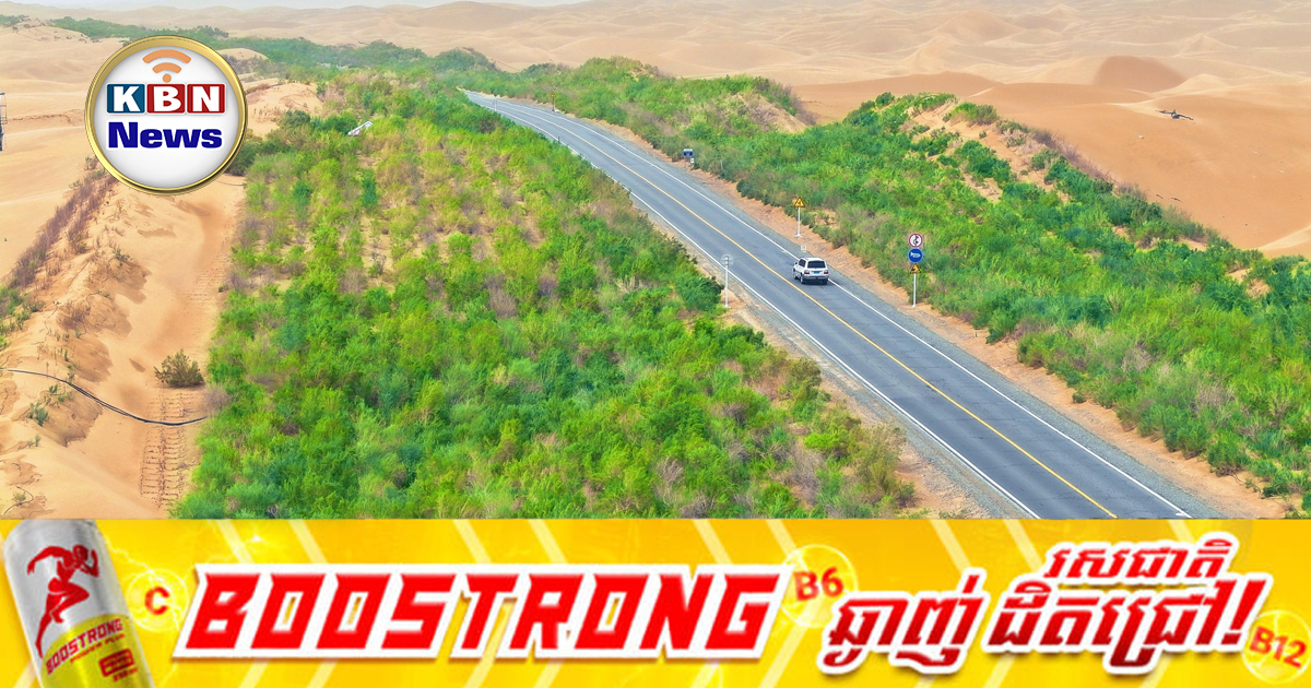 ខណៈពេលពិភពលោកកំពុងតែបំផ្លាញផែនដី ដោយការកាប់បំផ្លាញព្រៃឈើដែលជាដង្ហើម រួចបារម្ភអំពីការកើនឡើងនៃកម្ដៅផែនដី និងបម្រែបម្រួលអាការធាតុ ប្រទេសចិនបានសម្រេចបានជោគជ័យដ៏ធំមួយក្នុងការសាងសង់ «ជញ្ជាំងបៃតងដ៏អស្ចារ្យ» ប្រវែង ៣,០៤៦ គីឡូម៉ែត្រ ដើម្បីព័ទ្ធជុំវិញវាលខ្សាច់ តាក្លាម៉ាកាន ( ) ដែលជាវាលខ្សាច់ធំបំផុតរបស់ខ្លួន។ គម្រោងមហិមានេះ មិនត្រឹមតែសាងសង់ឡើងដើម្បីទប់ទល់នឹងសត្រូវធម្មជាតិប៉ុណ្ណោះទេ ប៉ុន្តែវាកំពុងក្លាយជាសួតក្នុងការស្រូបយកឧស្ម័នកាបូនិកពីបរិយាកាសផងដែរ។.jpg)