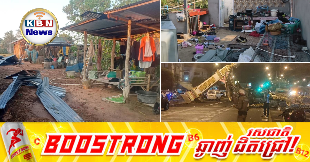 ខ្យល់ព្យុះកំណា.ចវាយប្រ.ហារខេត្តនានារបស់ថៃបណ្តាលឱ្យខូចខាតផ្ទះសម្បែង រួមទាំងព្រះឆាយាលក្ខណ៍ស្តេច